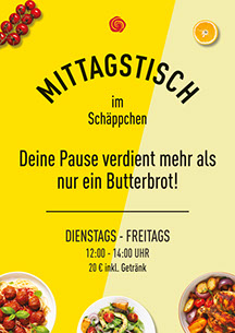 Unsere Mittagskarte erhalten Sie als Download, Printversion im Schäppchen oder auf unserem
